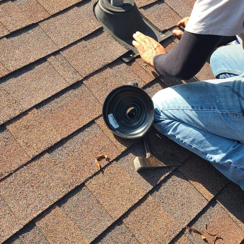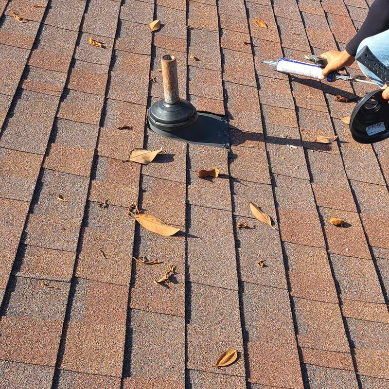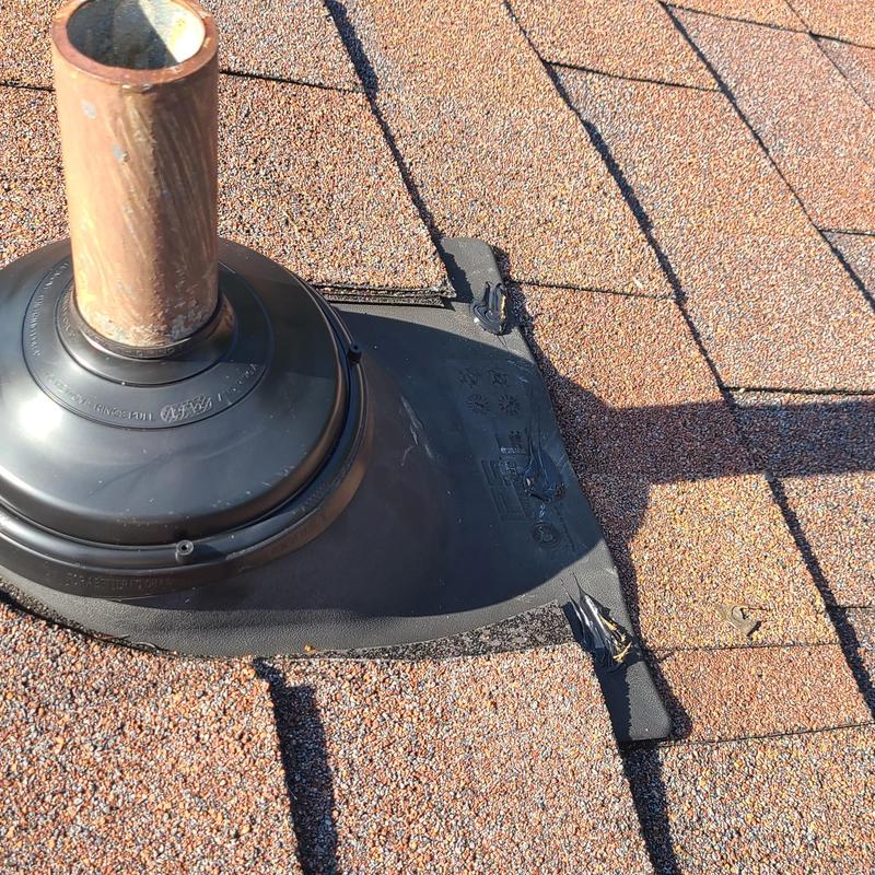 Terry Woodall Roofing removed damaged pipe boot flashing, applied ice and water shield, and installed a new roof boot with fresh shingles. This roofing service ensured proper sealing and protection against leaks. City and state details are unavailable due to missing geo-coordinates.